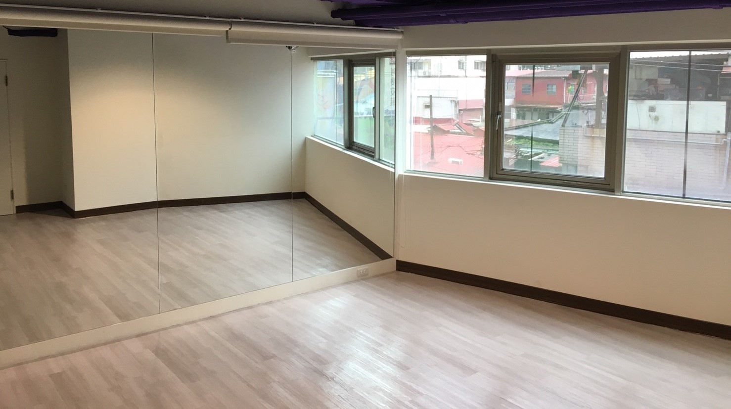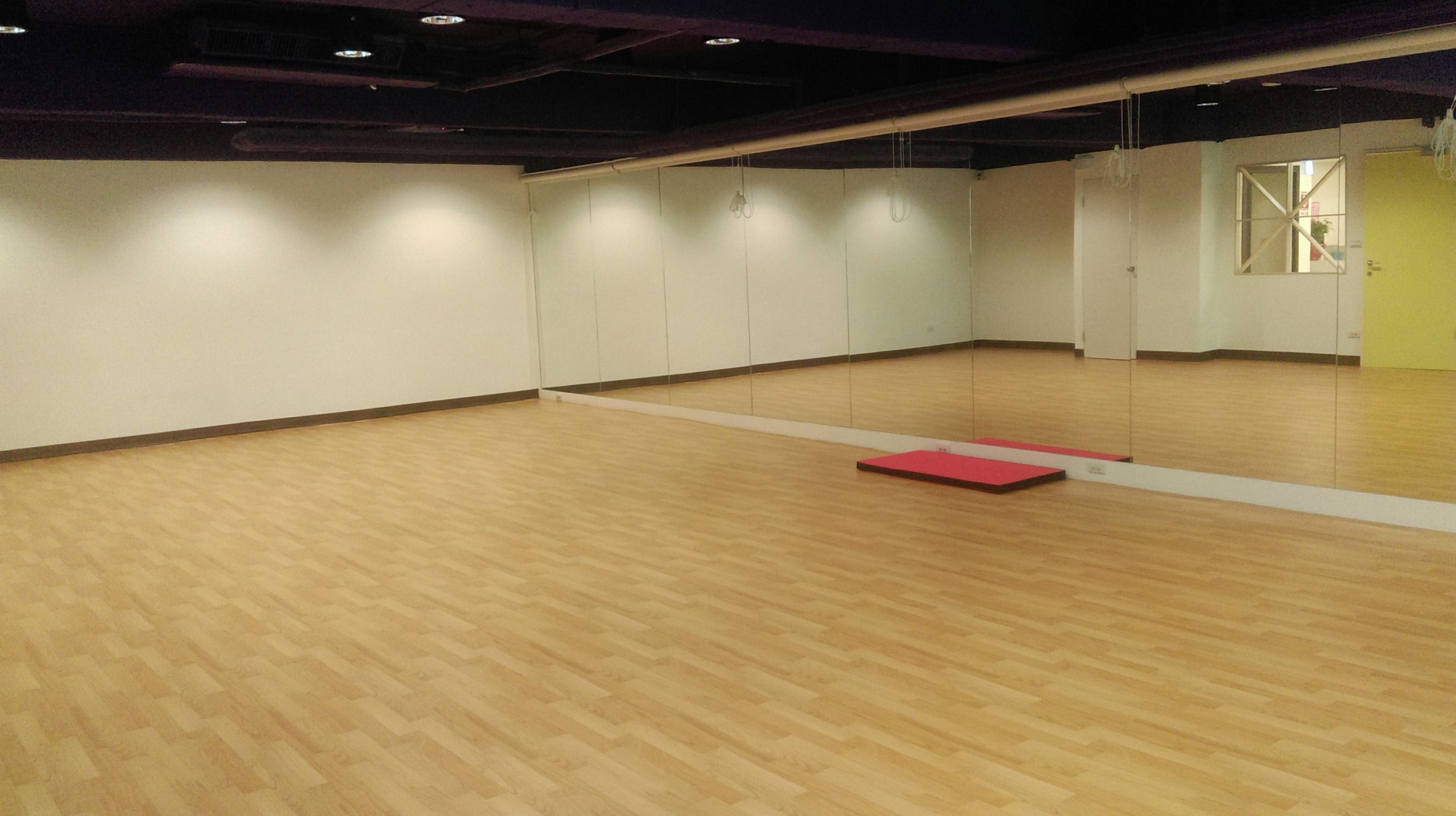 ● 牆面整片大鏡子,適合瑜珈、氣功等運動課程及舞蹈戲劇排練。